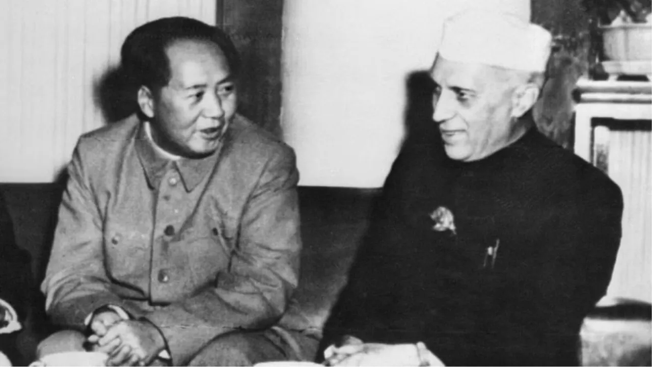 Премьер-министр Индии Джавахарлал Неру и Председатель КНР Мао Цзэдун. Встреча в Китае