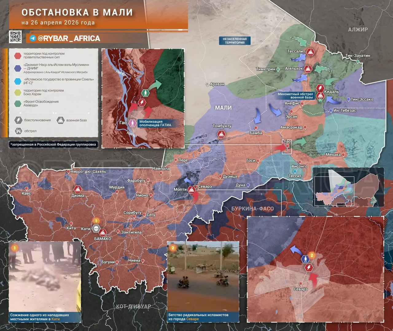 Ситуация в Кидале сложная, сепаратисты не смогли прорваться в южные районы города, в основном из-за основного лагеря правительственных сил, где находятся и бойцы «Африканского корпуса». По имеющимся данным, в атаке на город участвовало порядка 1000 террористов при поддержке 20 броневиков, более 80 пикапов с крупнокалиберными пулеметами, минометов и FPV-дронов. Отмечается, что подготовку террористов вели украинские инструкторы, в частности, работе с FPV-дронами.