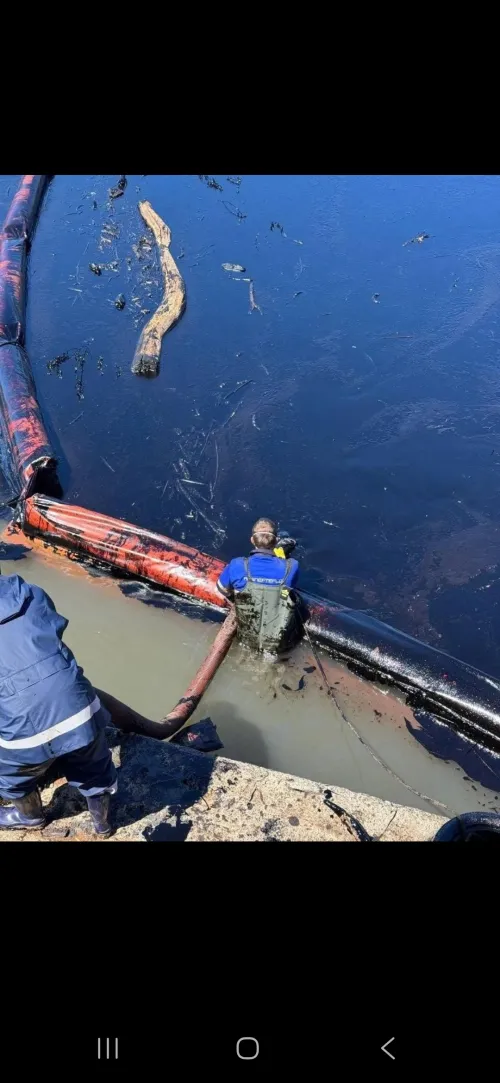 Вдоль берега реки Туапсе на фоне пожара на НПЗ и утечки нефтепродуктов выставлен дополнительный рубеж боновых заграждений. Работа идет круглосуточно, ситуация под полным контролем.