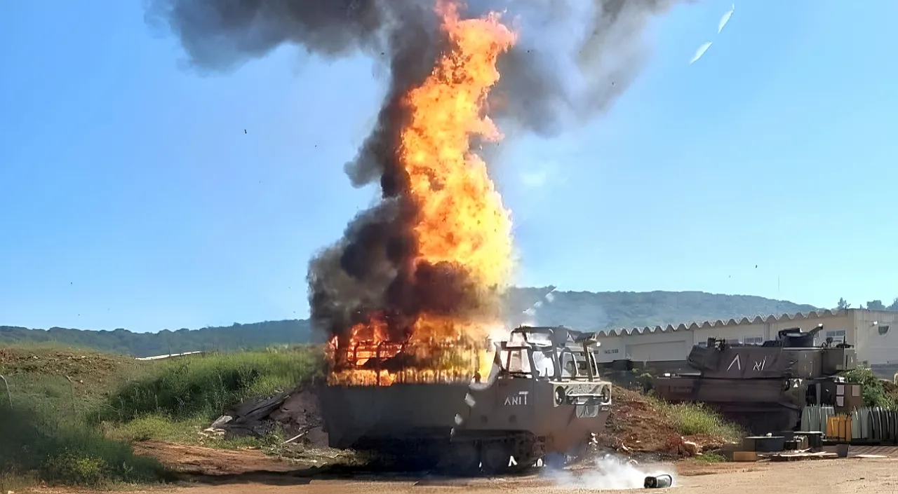 Ударный дрон шиитских бойцов поразил бронемашину, которая загорелась. В результате также сдетонировали находившиеся рядом боеприпасы. Несмотря на то, что «Хизбалла» все чаще применяет для атак по израильской технике беспилотники, в ЦАХАЛ все никак не могут озадачиться установкой антидроновой защиты. Редко можно увидеть танк «Меркава» с козырьком на башне, который слегка защищает только от сбросов взрывчатки.
