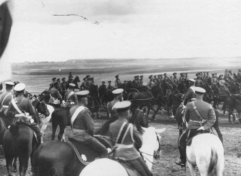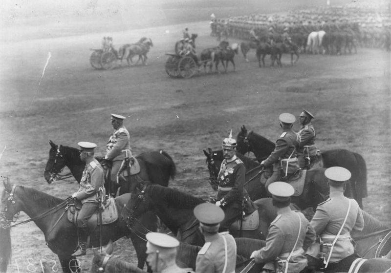 13. Император Николай II и сопровождающие его лица проводят смотр. 25 июля 1913