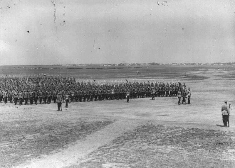 35. Войска лагерного сбора проходят церемониальным маршем по военному полю. 25 июля 1913