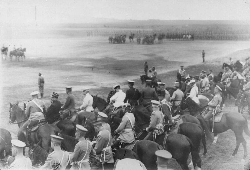 15. Офицеры русской армии и германский генерал на плацу во время смотра войск. 30 июля 1912