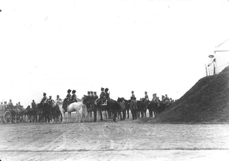 23. Император Николай II, офицеры русской армии и представители германской, французской и других иностранных военных миссий на параде войск. 30 июля 1912