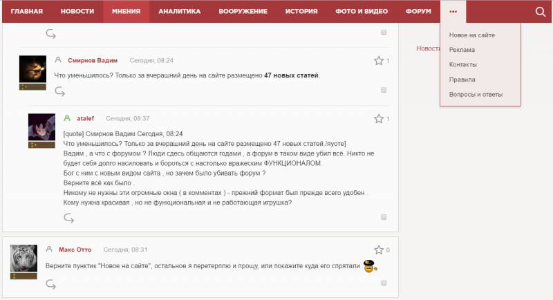 7. Мнения сделали отдельным разделом, так как он довольно популярен и многие читатели пишут свои статьи и для них специально выделили блок на главной, раньше мнения на главной вообще не публиковались.
